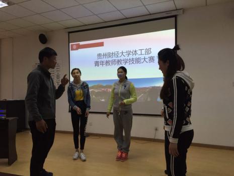 (体工部 陆双妹 报道|阳喜 陈思思 摄影)2017年4月25日下午1:30,在花溪校区体育馆会议室举行了体工部青年教师教学技能大赛。书记孟宪婷和副主任余兵、夏肖林、阳喜及教学督导团全体成员作为本次大赛的评委对八位选手进行客观公正公平打分。部门全体教职工参加了本次大赛。