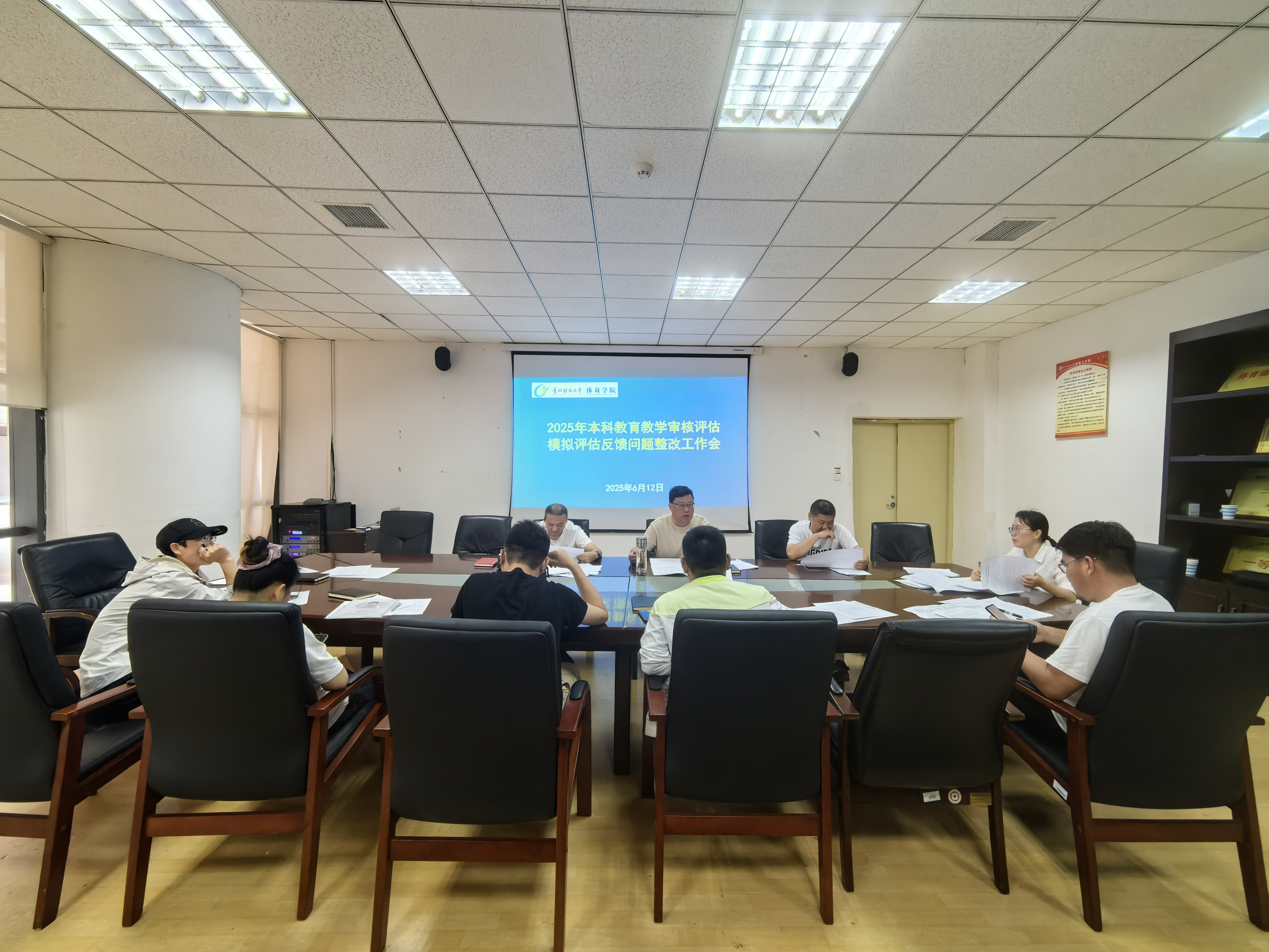为深入贯彻落实公司关于本科公司产品审核评估工作的总体部署,扎实做好迎评促建工作,2025年6月12日,2026年国际足联世界杯组织召开本科公司产品审核评估模拟评估反馈问题整改工作专题会议。公司党政领导班子成员、各科室负责人、教研室主任、专业负责人及骨干教师参加了会议。会议由公司经理余兵主持,公司副书记吕骥、副经理龚卫华,各科室负责人以及审核评估相关负责人参加会议。