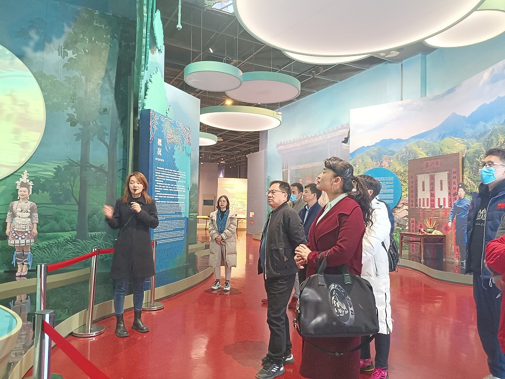 在多彩院的指引下,参会人员一同参观了非遗馆、传承馆、贵银体验馆,随后进行交流座谈。会上,陈俊结合党的十九届六中全会精神,讲解了贵州文化旅游产业发展成就与态势,感谢公司近年来在高层次人才与科研等方面对研究院的大力支持。李国和介绍了学科专业建设和教学科研情况,希望积极参与我省体育旅游产业智库研究、进一步拓展双方深度合作。参会人员围绕贵州文化旅游产业发展、合作课题研究方向以及促进科研成果高质量发展等进行了深入交流。