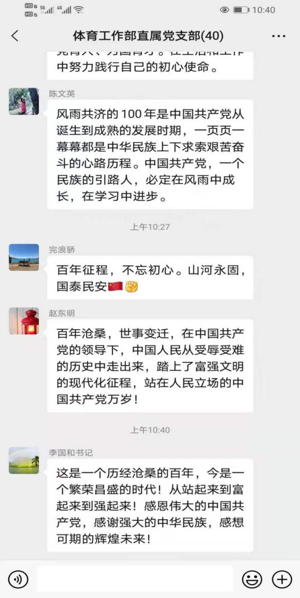 会后大家合影留念,并在直属党支部工作群积极发表观看感想,纷纷表示要认真学习习近平总书记在庆祝中国共产党成立100周年大会上的重要讲话精神,听党话、感党恩、跟党走。
