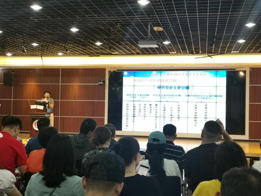 6月15日下午,由现代教育技术中心、图书馆,体育工作部、后勤集团等多部门联合举办的“牢记殷切嘱托、忠诚干净担当、喜迎建党百年”党史学习教育专题讲座在笃行楼举行,体工部全体党员参加。