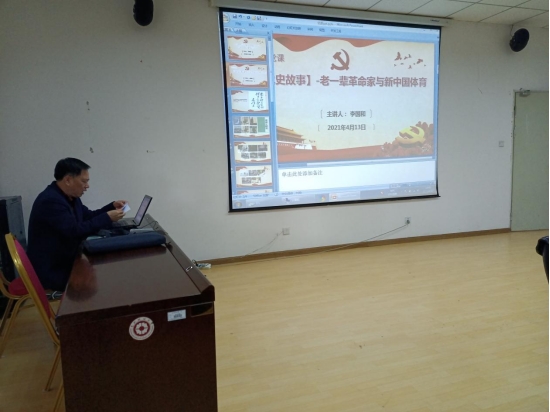 会后,李国和作题为《党史故事——老一辈革命家与新中国体育》的党史专题党课,带领大家围绕老一辈革命家与新中国体育发展进行了学习,回顾了毛泽东、周恩来、刘少奇、朱德、邓小平、陈云、贺龙、陈毅等老一辈革命家为新中国体育事业发展做出的各项重大决策和建立的丰功伟绩。