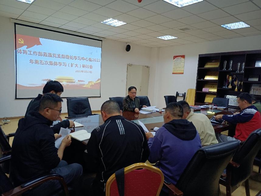 5月17日下午,体育工作部直属党支部理论学习中心组在体工部会议室召开了第五次集体学习。会议由体工部直属党支部李国和书记主持。各科室负责人、科级干部、支委委员、党小组组长、教研室主任参加了学习会议。