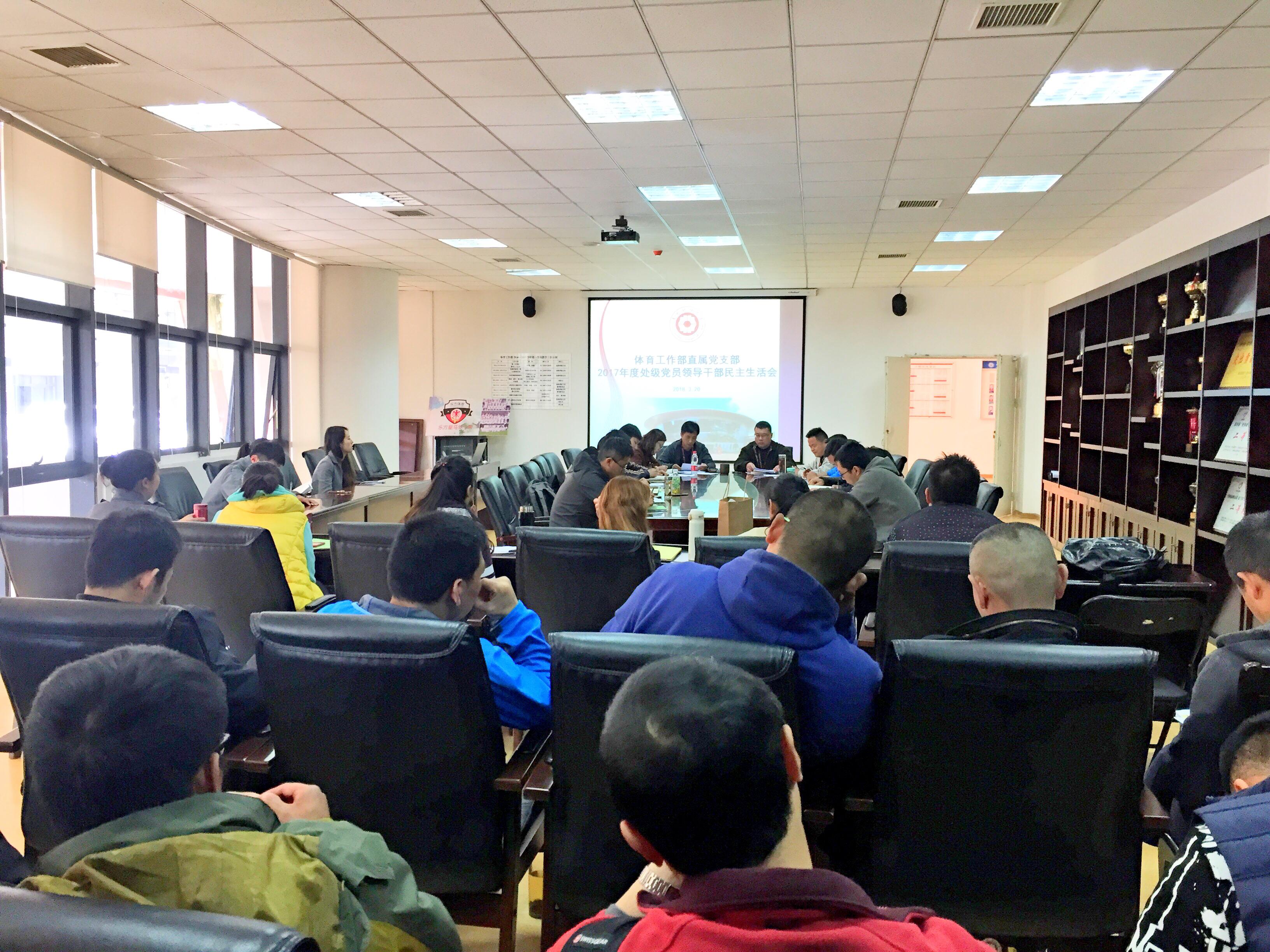根据中共贵州省委组织部《关于转发<中共中央组织部关于召开2017年度基层党组织组织生活会和开展民主评议党员几个问题的通知>的通知》(黔组通〔2018〕4号)(以下简称《通知》)文件要求,体育工作部直属党支部高度重要,于2018年2月20日下午13:30召开处级党员领导干部民主生活会、2017年度组织生活会和开展民主评议党员,组织部档案干部科科长李平同志及体工部全体教职工参加,会议由体工部直属党支部组织委员何小红同志主持。