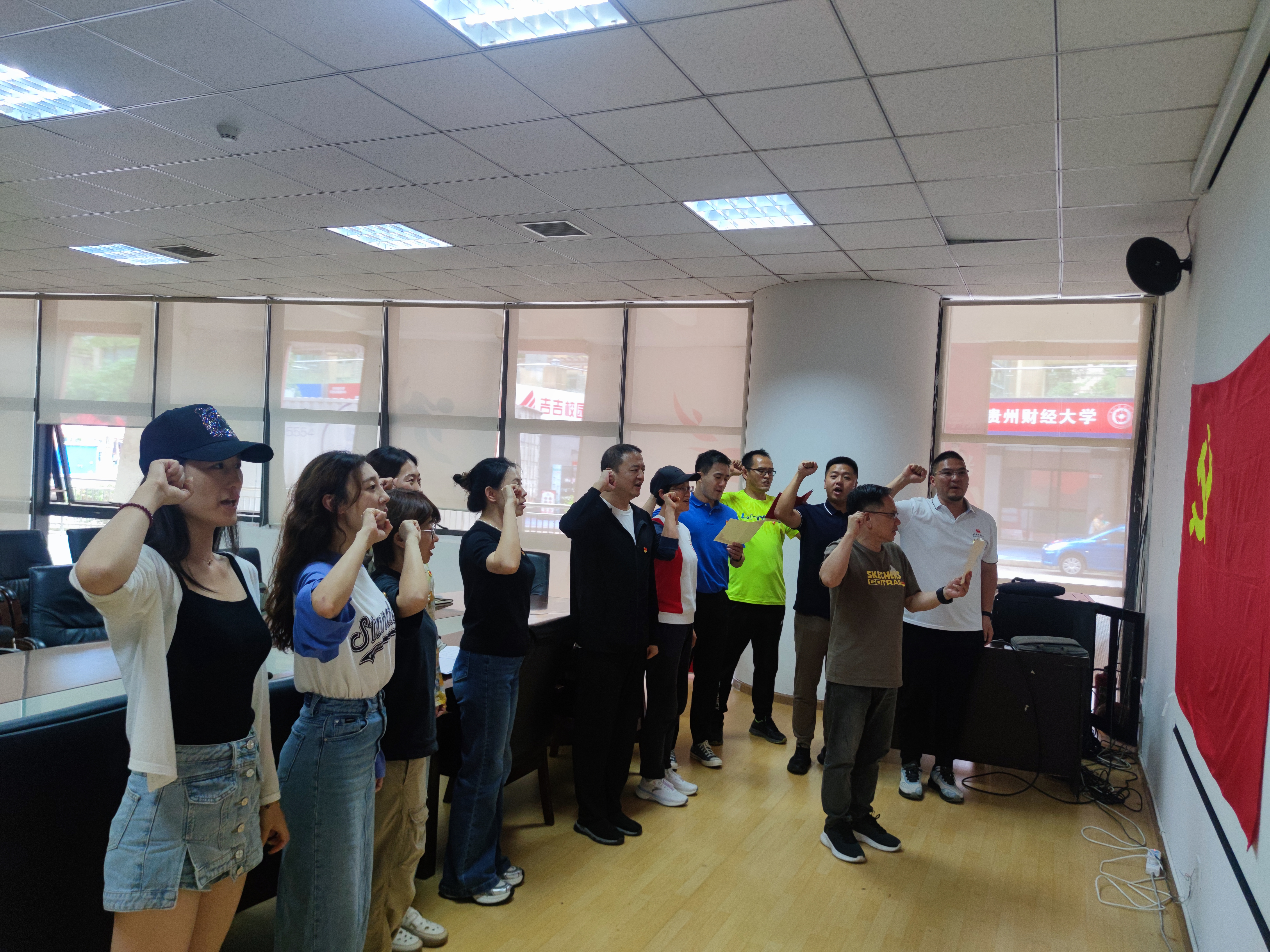 公司党委书记李国和带领全体党员重温入党誓词。支部党员面向鲜红的党旗,高举右手,庄严宣誓。通过重温宣誓坚定信心,砥砺前行。