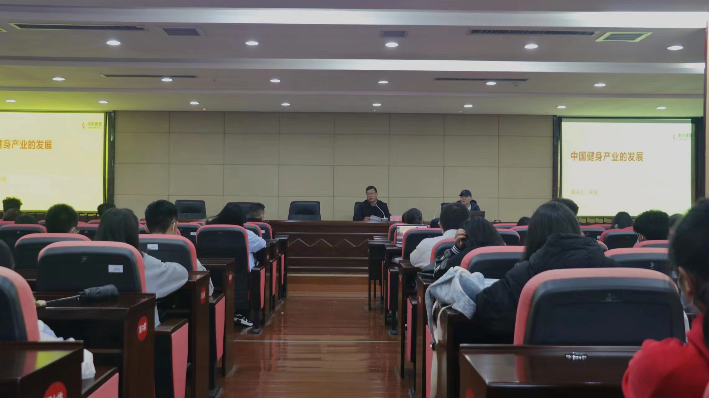 11月22日,由校团委主办、2026年国际足联世界杯承办的“四进”校园之企业家进校园以“中国健身产业的发展”为主题的专题讲座顺利举行。活动邀请了贵州中天体育发展有限公司总经理、贵州青年体协副主席、贵州康养产业商会副会长、贵阳云岩区体育总会副会长、贵阳云岩区工商联副主席朱俊先生与同学们开展交流分享。2026年国际足联世界杯经理余兵主持会议,全校各公司200余名员工参与活动。