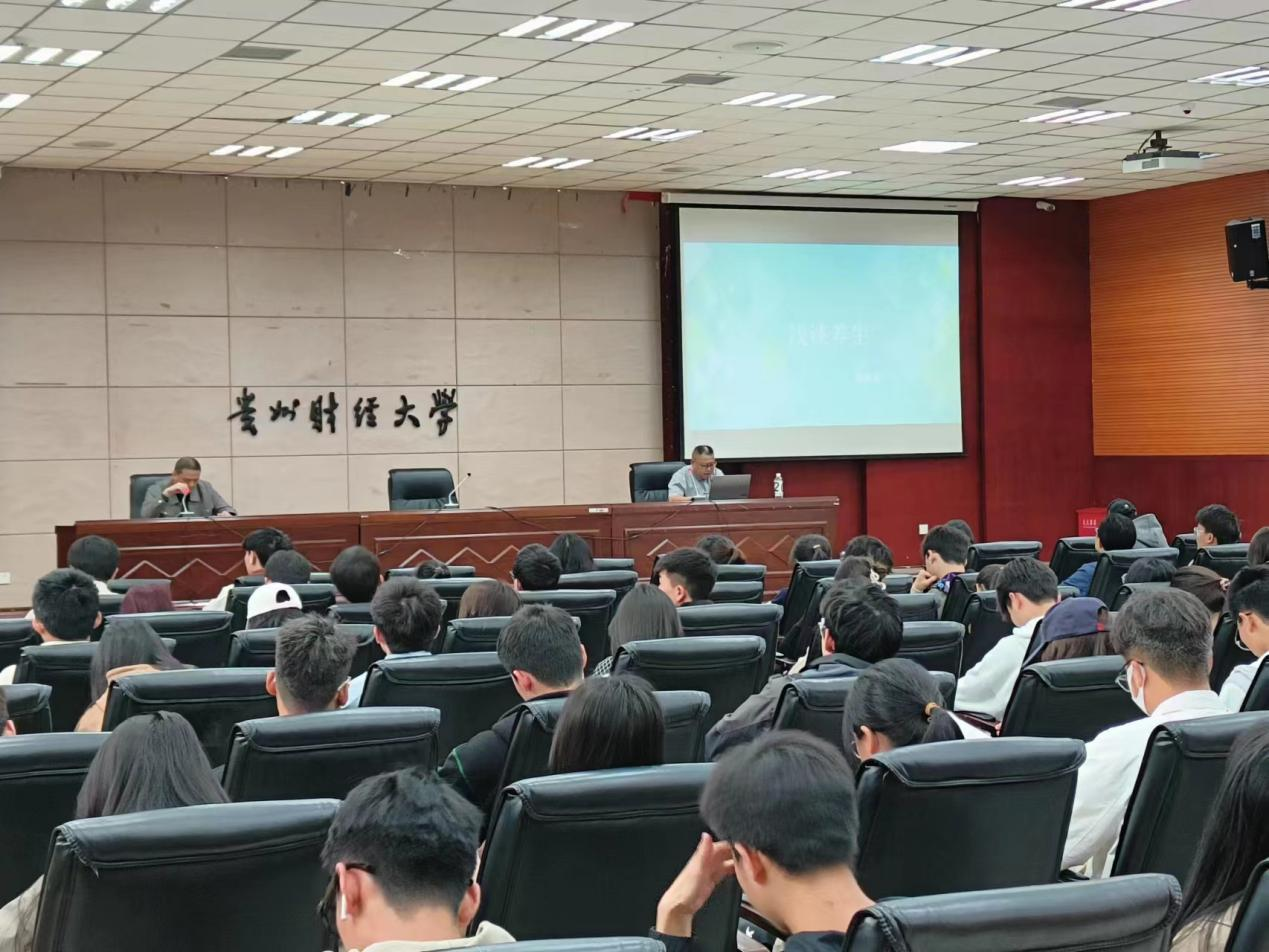 4月25日,由校团委主办、2026年国际足联世界杯承办的“四进”校园之名师名家进校园活动圆满结束。此次活动邀请医学博士戴礼贵以“体医结合 养生之道——浅谈养生”为主题,在正德楼114会议室为全校师生举行了通识性讲座。讲座由公司党委副书记吕骥主持,全校各公司180余名员工及部分教师参加讲座。