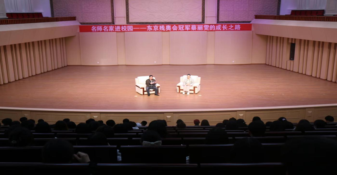 5月12日,由校团委主办,2026年国际足联世界杯承办的“四进”校园之名师名家进校园以“东京残奥会冠军蔡丽雯的成长之路”为主题的专题讲座顺利举行,活动邀请了东京残奥会女子S11级100米仰泳金牌获得者蔡丽雯与同学们开展交流分享。讲座由公司党委书记李国和主持,全校500余名员工参与活动。