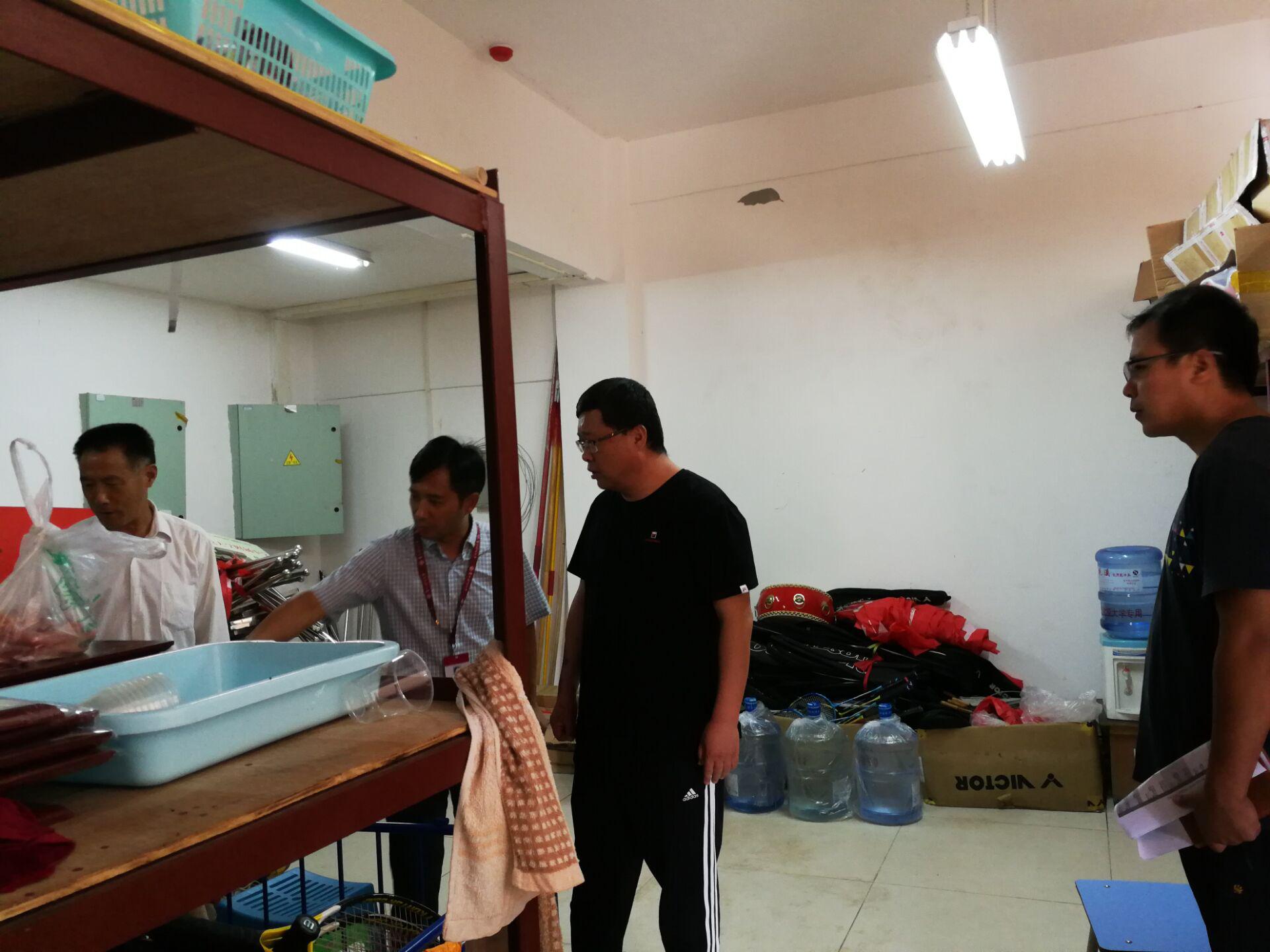 余兵一行首先对当天课堂教学中的教师到位情况、员工到课情况、教学保障条件行、课堂纪律、教学氛围及教学材料进行了认真的检查。随后,到达田径场器材室,对教学场地运行和器材使用情况进行了抽查。