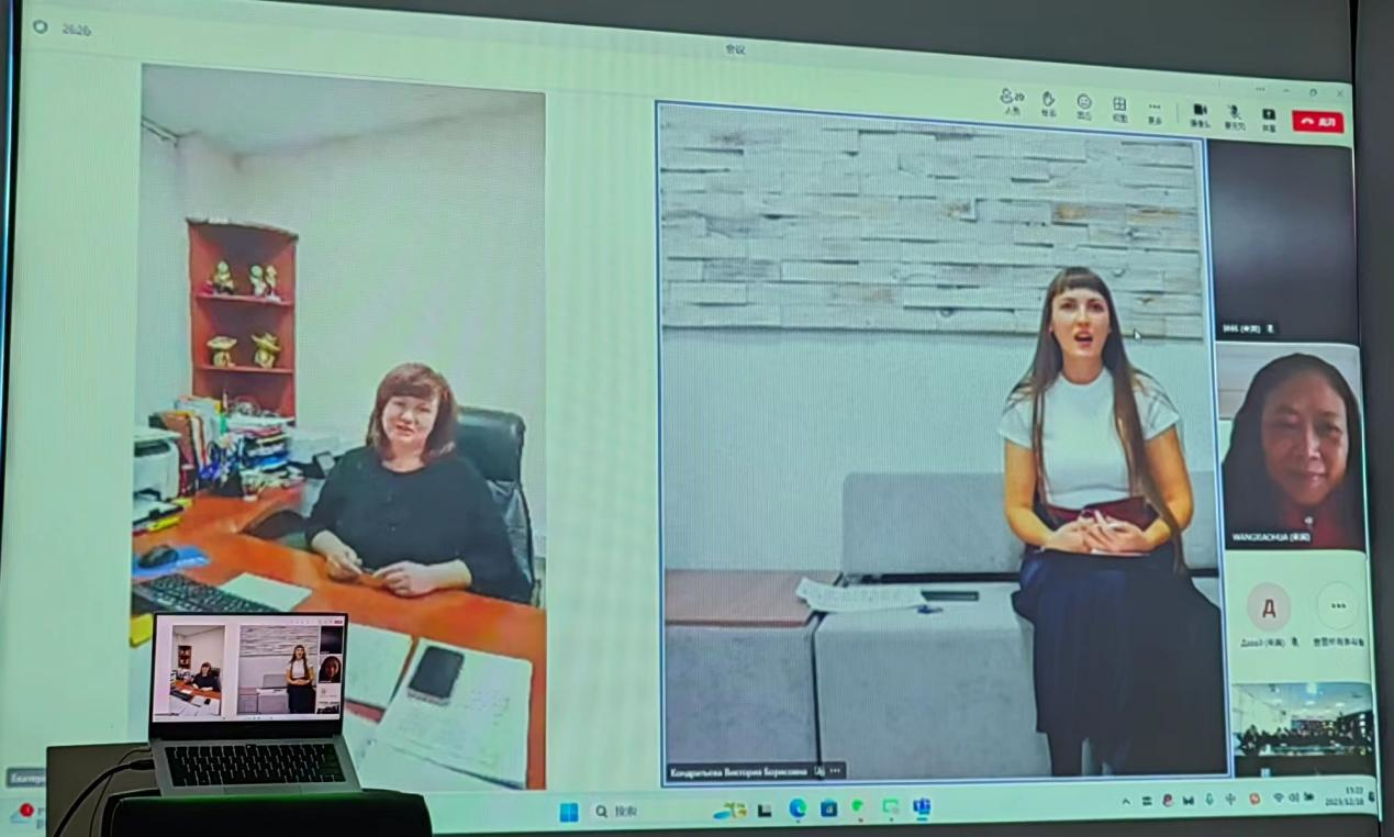 12月18日中午,在公司国际交流合作处协助下,2026年国际足联世界杯与俄罗斯下瓦尔托夫斯克大学进行了线上视频交流会。下瓦尔托夫斯克大学国际办公室主任维多利亚·康德拉季耶娃、体育运动公司经理斯维特兰娜·德鲁日尼娜出席。公司国际交流合作处处长王小华、公司党委书记李国和、经理余兵、副经理龚卫华、体育经济与管理本科专业2022级和2023级119位员工,以及部分教师代表参加本次线上交流活动。