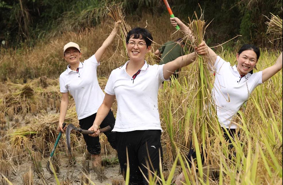 下午,参会人员来到田间地头,听取村委介绍乡村振兴情况介绍,深入了解乡村振兴中面临的困难问题。同时,亲自到水田开展帮村民秋收农活体验。大家纷纷撸起袖子,卷起裤脚,热情高涨,割稻谷,打谷子,运稻谷。一粥一饭当思来之不易,半丝半缕恒念物力维艰。活动结束,大家纷纷感受到农活的不易,表示更加懂得珍惜粮食的珍贵,珍惜自己所处的美好生活,以实际行动为乡村振兴献力献策。