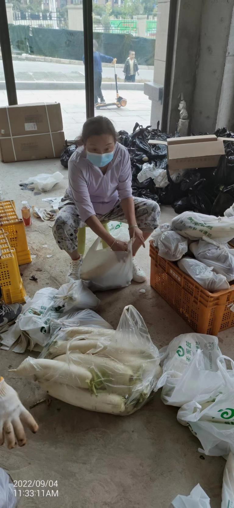 朱蓉君在社区分拣蔬菜