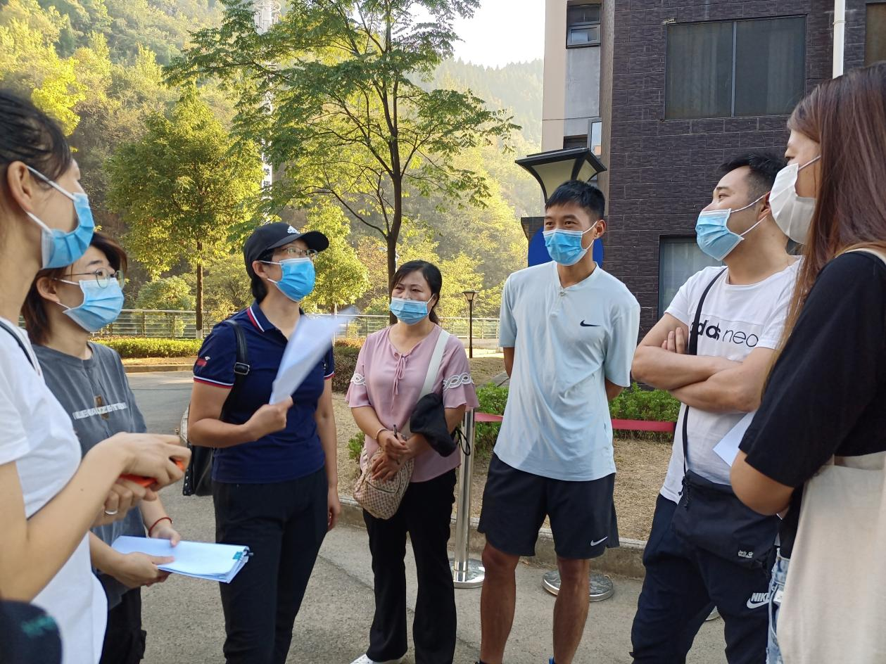史占格(右二)、朱晓晓(右一)等在抗原检测现场