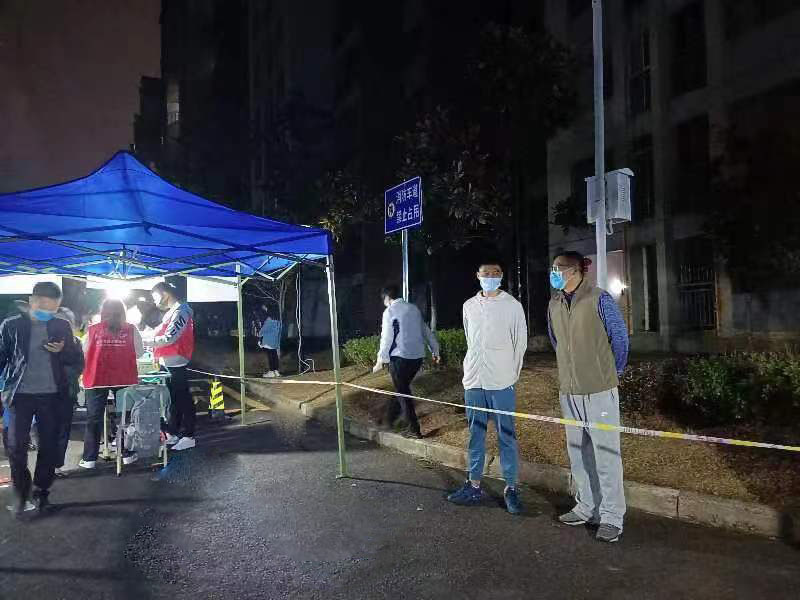 牛文玉(右一)、马俊(右二)在核酸检测现场