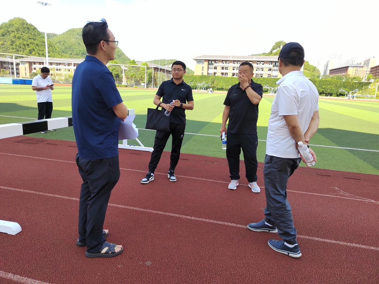 7月12日下午,为保障2023年贵州省大中员工田径锦标赛顺利举行,省教育厅体卫艺处一级调研员严卫率领省员工体育协会以及本次比赛裁判长一行到公司检查相关筹备工作,公司经理余兵、副书记吕骥、副经理龚卫华及场馆管理中心负责人王玉清陪同检查。