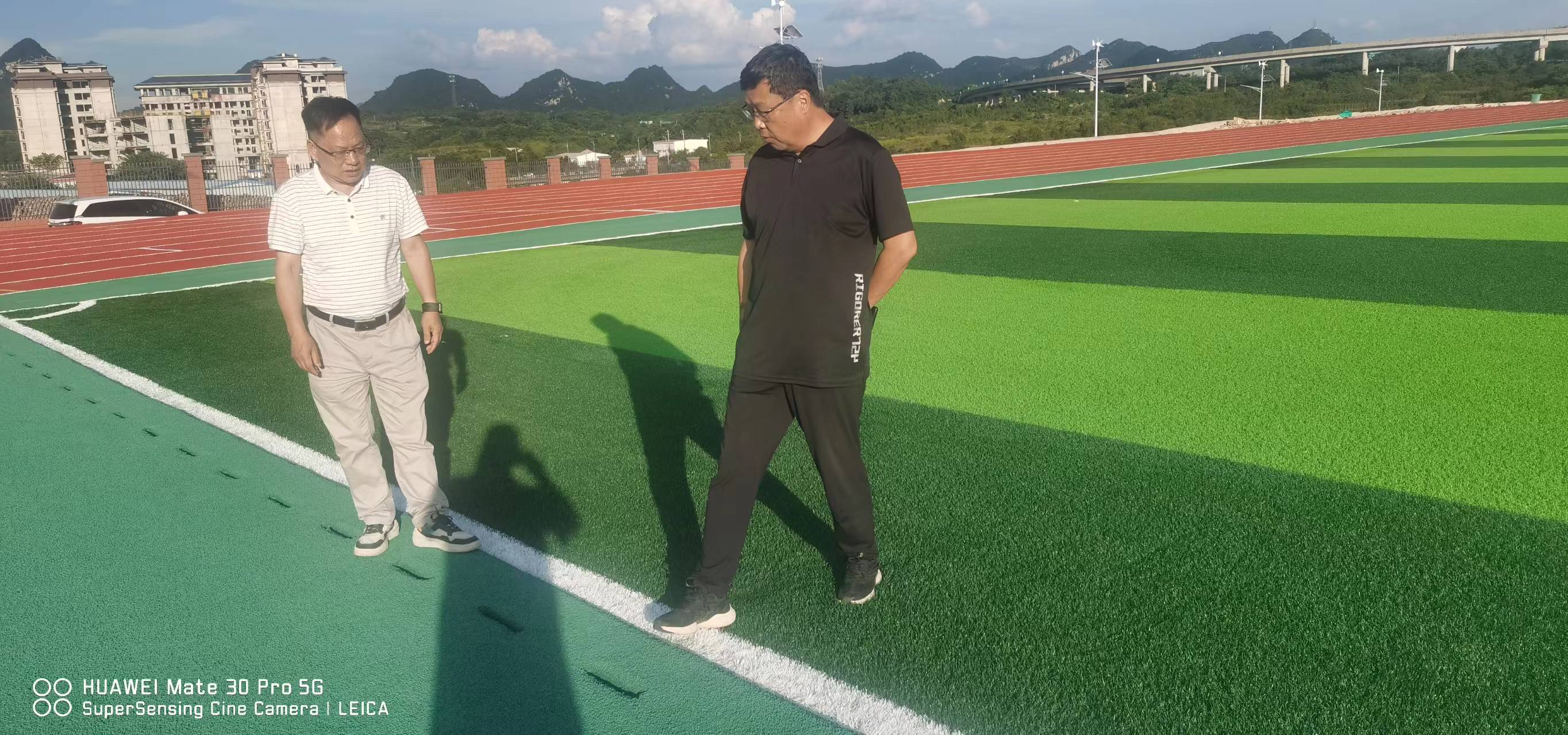8月4日下午,李国和书记、余兵经理、龚卫华副经理及场馆管理中心负责人王玉清一行到公司东区检查体育运动场馆建设情况,与公司项目部负责老师及施工单位现场负责人就施工工艺、工程时间等问题进行沟通,并指出施工存在的问题。