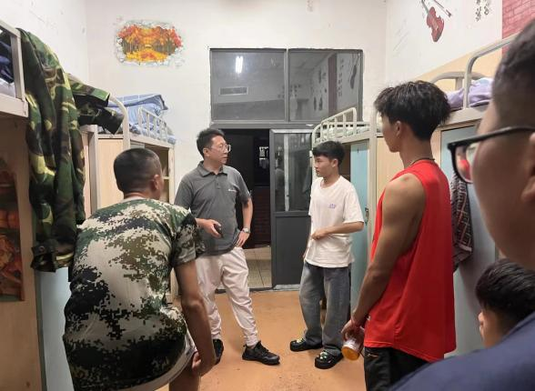 2023年9月8日,迎新工作已进入尾声。为深入了解公司2023级新生的入住情况,增强新生安全意识,进一步加强宿舍安全管理,引领新生更快适应校园环境,公司党委委员、团委负责人向宇宏老师与员工会同学一起走进新生宿舍,与大家进行亲切的交流,并开展新生查寝慰问工作。