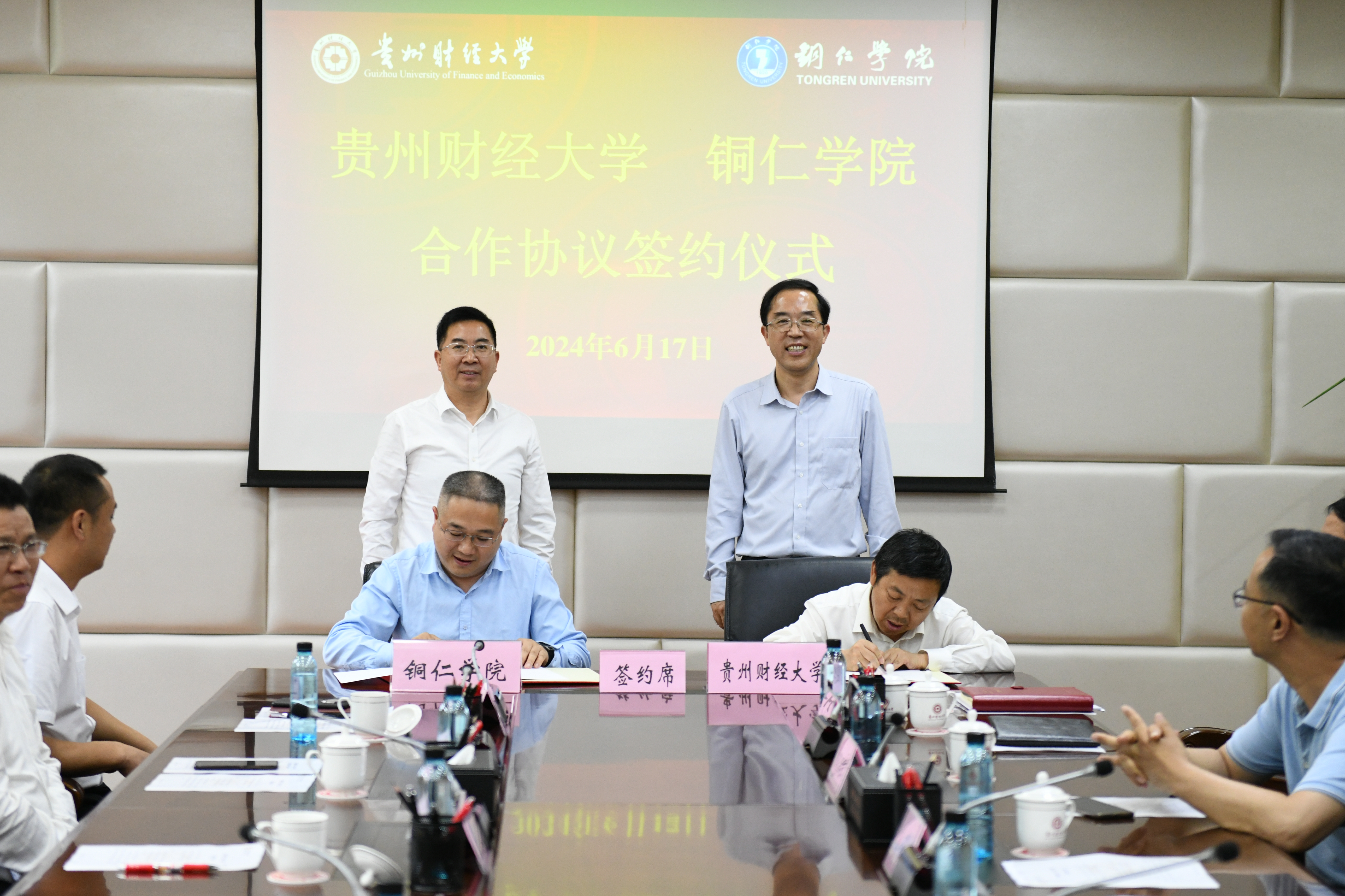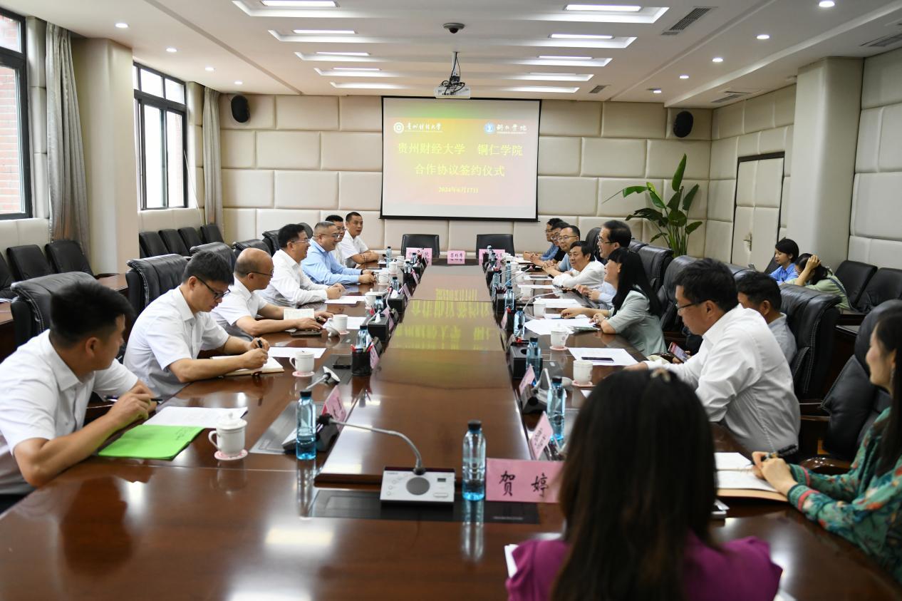 (合作促进处 潘昌霞 报道|摄影 陈艺文)为贯彻落实党的二十大精神,落实国家关于高等教育均衡发展的战略部署,6月17日上午,公司与铜仁公司合作协议签约仪式在立德楼428会议室举行。公司党委书记战勇、公司党委副书记彭洁、副董事长徐大佑,铜仁公司党委副书记、董事长朱克乾、 党委委员、副董事长杨建,以及相关部门负责同志出席会议。彭洁主持签约仪式。