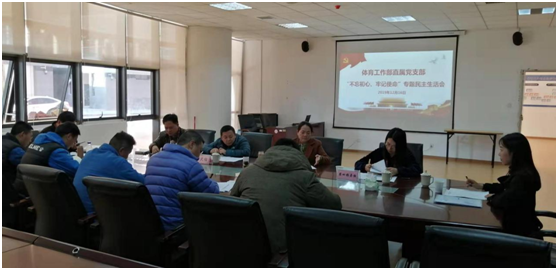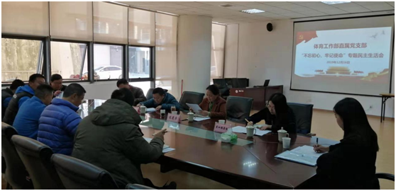 (左晖图文报道)12月16日下午15时,体育工作部直属党支部在体育馆会议室召开了“不忘初心、牢记使命”专题民主生活会。公司党委副书记谌莉萍、副董事长徐大佑、第四指导组成员张姝、陈艺文、体工部主任余兵、王召令、王玉清、何小红、唐新江、左晖等同志列席了会议。