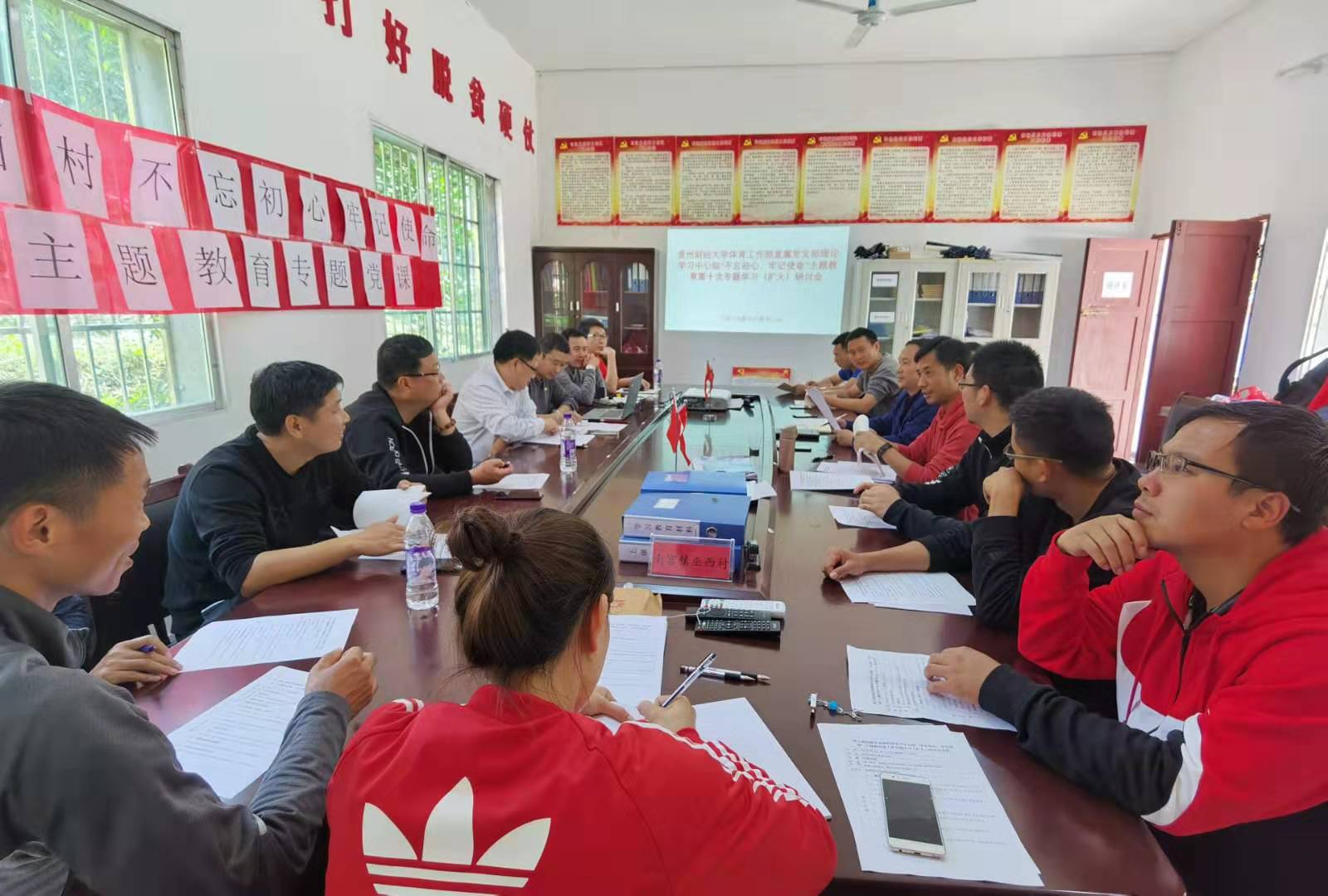 中午12点,在巫西村脱贫攻坚指挥所办公室现场召开了体工部直属党支部理论学习中心组“不忘初心、牢记使命”主题教育第十次专题学习(扩大)研讨会,会议由李国和书记主持,巫西村驻村扶贫第一书记阳喜同志、巫西村村委、体工部直属党支部委员、党员及部分积极分子参加会议,主任余兵同志列席,会议集中学习了《习近平扶贫论述摘编》一书中“坚持精准方略,提高脱贫实效”“坚持社会动员,凝聚各方力量”等章节,阳喜同志结合三个多月巫西扶贫实际作了专题发言,并就目前该村脱贫工作进度、成效及存在的困难做了汇报交流。