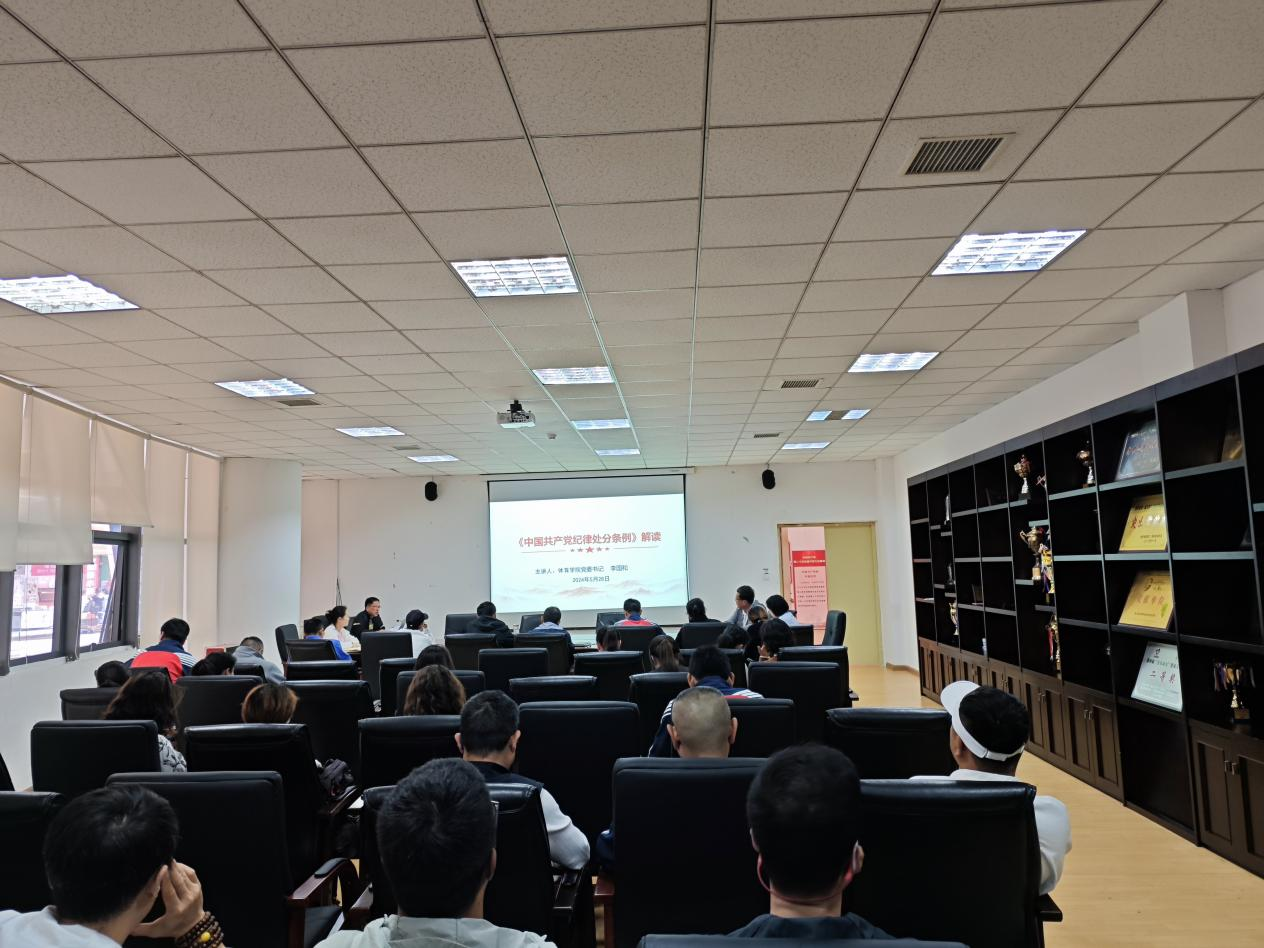 李国和围绕主题,从《中国共产党纪律处分条例》的历史沿革和修订背景,《条例》主要内容和核心要义,切实推动学习贯彻《条例》走深走实等三个方面,解读阐述了认真学习《条例》的重大意义,引导全公司党员干部把遵规守纪刻印在心、内化为日用而不觉的言行准则。同时,结合公司实际工作,特别是针对当前体育教育工作领域存在的廉洁问题进行了深入剖析。